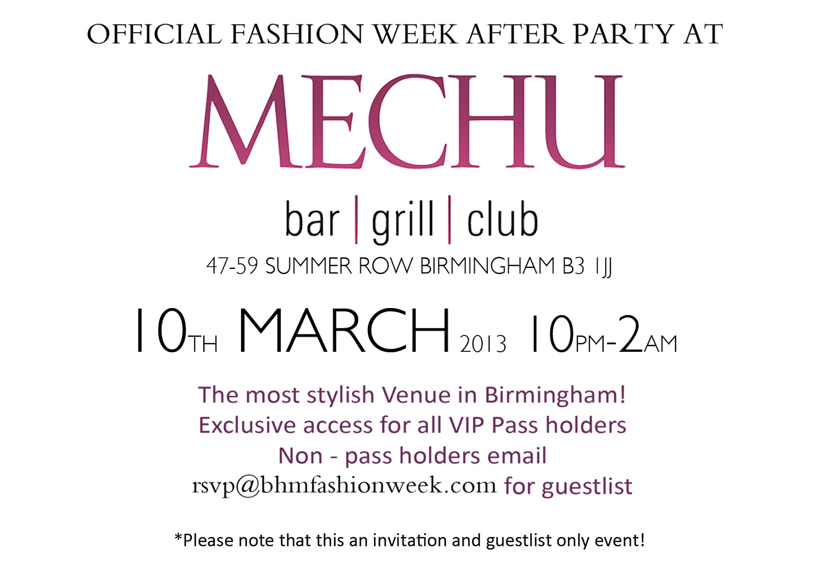 rsvp@bhmfashionweek.com your full name for the after party guest list